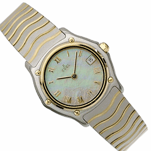 DESCRIPTION: Stainless steel and 18 karat gold case and bracelet, brushed links, date calendar, Swiss quartz movement, 27mm case, mother-of-pearl dial.