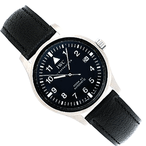 DESCRIPTION: Stainless steel case (38mm), black buffalo leather strap, black dial with arabic numerals, luminous hands and markers, sweep second hand, date calendar at 3:00, soft-iron inner case for protection against magnetic fields, screw down crown, 21 jewel automatic movement, 42 hour power reserve, sapphire crystal, water resistant to 60m. Swiss made.