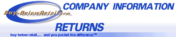 by either calling Toll Free 1-800-263-0226 or emailing us at returns@Buy-BelowRetail.com.